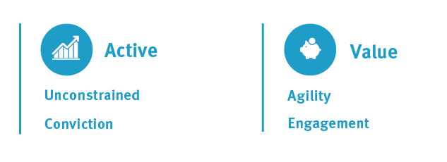 - Agility: We often look beyond traditional metrics to uncover value hidden on company balance sheets or within revaluation triggers. Agile thinking can also lead us to businesses whose intrinsic earnings capacity or growth potential is underestimated by the market.