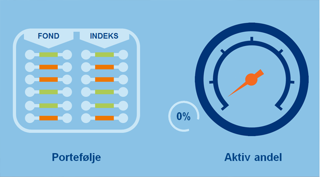 Se sammenligning illustrert i bildene under. Hvis et fond har en lav aktiv andel, vil fondet være tilnærmet likt referanseindeksen.
