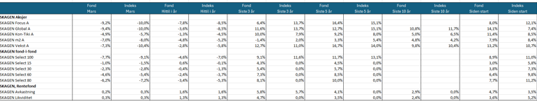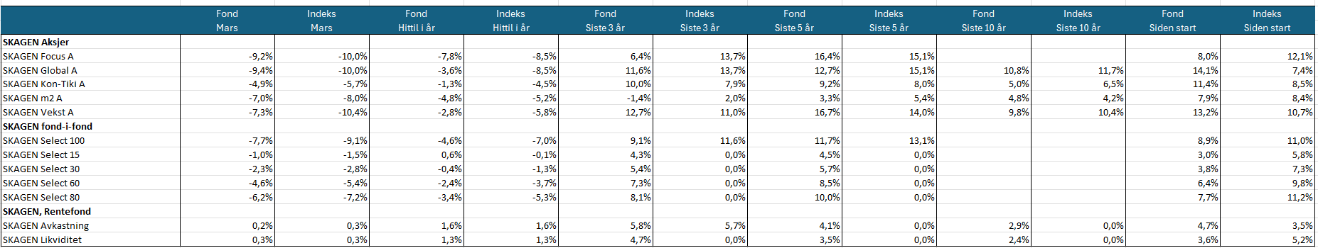 SKAGEN Global falt 3,6 prosent i første kvartal mot indeksens fall på 8,5 prosent. Flere avkastningstall nederst i artikkelen.