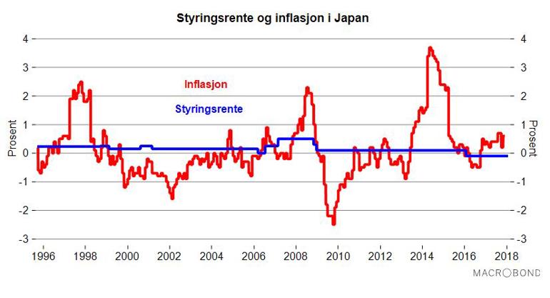 Et mer informativt eksempel er Japan. Der har styringsrenten vært mellom 0,5 prosent og 0 prosent siden oktober 1995. I gjennomsnitt har årlig inflasjon vært 0,1 prosent. Høyeste tolvmånedersvekst var 3,7 prosent, i mai 2014. Det største tolvmånedersfallet var 2,5 prosent, fra oktober 2008 til oktober 2009.