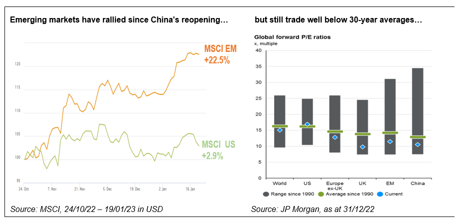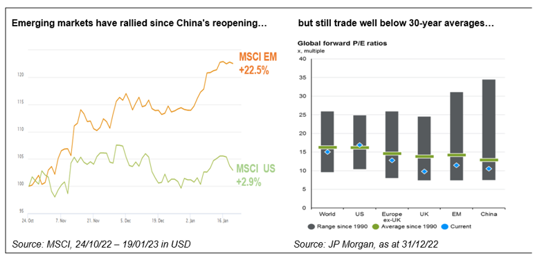 Active investors can also target winners and avoid losers in different geographies, especially if like SKAGEN they have the freedom to go wherever the opportunities are best. A good example is emerging markets which have been boosted by China relaxing its Covid rules and a weakening dollar but where company valuations remain well below long-term averages. Similar discounts are available in Europe, in contrast to the US where prices remain above-average. This wide dispersion in valuations creates a supportive environment for stock pickers to outperform.