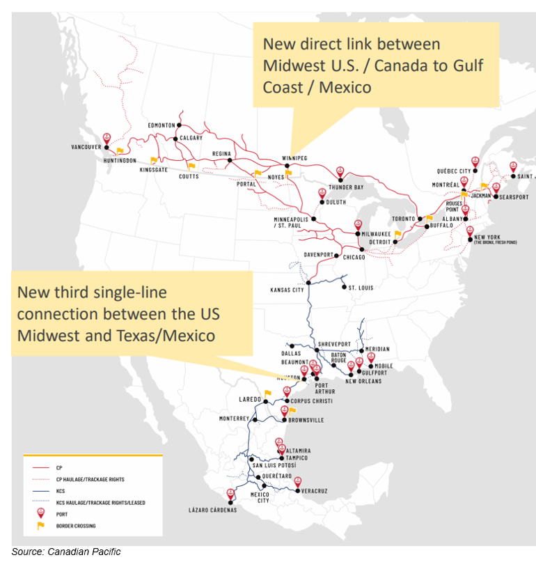 It also provides large optionality with a plethora of opportunities to provide customers with improved supply chain solutions through partnerships with other shippers and freight companies (including other railways) or via the expansion of Canadian Pacific’s own railroad system, given that the company owns its own track infrastructure.