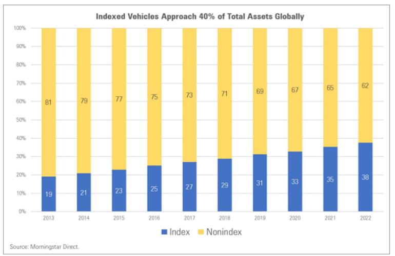The response of active managers to the passive attack has been similarly aggressive with new products launched targeting different market segments and multi-pronged attacks on the detriment index-based investing causes to capital market efficiency by distorting price discovery, channelling money to undeserving businesses and amplifying volatility.