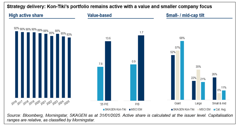 SKAGEN Kon-Tiki looks well-placed to navigate this ever-changing market back-drop with a portfolio of hand-picked undervalued companies diversified across regions and sectors. Bjelland concludes: “We believe that our holdings offer a very attractive trade-off between quality and the price we paid for them. This could become even more important if tariff-driven volatility persists to help avoid the losers from any trade wars but also to find the winners.”