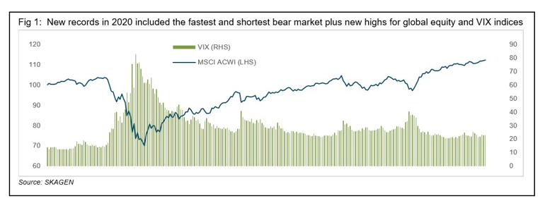 Our equity funds experienced a similarly exciting 2020 but I'm pleased to report that all bar one ended with positive absolute returns and each recorded a record high during the year. SKAGEN Kon-Tiki and SKAGEN Focus also outperformed their respective benchmarks; reward for an unwavering emphasis on value despite often challenging market conditions. You can read more about the fourth quarter highlights for each fund using the links below.