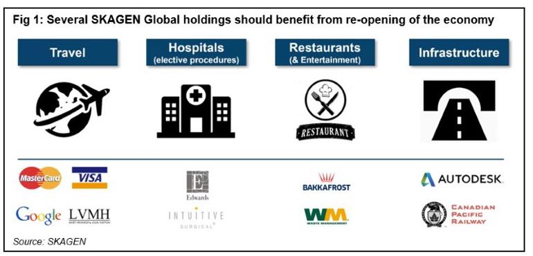 The outlook is similarly positive for global equity fund SKAGEN Global and its carefully selected stocks, as Lead Portfolio Manager, Knut Gezelius, explains: "Several of our core holdings will be boosted as the world emerges from lock-down. Increased travel will benefit Visa and MasterCard, as well as Google which receives significant advertising revenue from travel companies." Another portfolio example is luxury goods group LVMH which saw revenues decline 17% in 2020, but said recently that it was cautiously confident for this year and "well-equipped to build upon the hoped-for recovery in 2021 and regain growth momentum for all its businesses"[1].