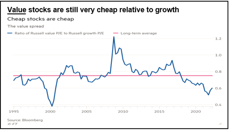 Amid the turmoil of 2022 it has been easy to overlook the continued dominance of value over growth, with the former outperforming by a huge 20 percent so far this year (see chart below). While value has been boosted by a strong energy sector, rising interest rates have caused investors to seek higher returns and growth stocks that were previously thought to be fairly valued have de-rated. High risk assets like meme stocks, cryptocurrency, SPACS and Chinese real estate which rose to stratospheric levels thanks to the stimulus of the previous regime have fallen even further.