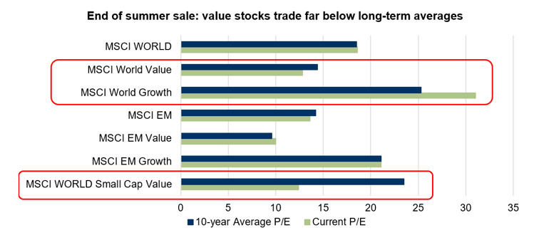 We have already started to see some profit-taking by investors with the 'magnificent seven' down 6% since their summer highs, despite each company beating analyst expectations. This is equivalent to losing over $600bn in combined market value, yet the disparity in valuations between growth and value stocks remains huge and suggests there is further to go.