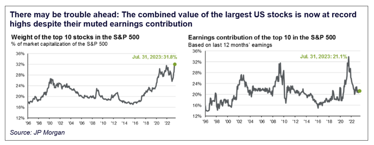 Where do I stand? I was very bullish in January (maybe for the wrong reasons) but more cautious now and lean more towards the 'higher interest rates for longer' camp. I expect a market correction at some point, which will signal an end to the AI frenzy that has driven dispersion in stock performance and market concentration to unhealthy levels this year.