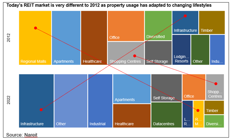 The global market capitalisation of Real Estate Investment Trusts (REITs) has more than doubled in size to $1.4 trillion (2012: $603 billion) while the value of commercial real estate owned by REITs has more than quadrupled to $3.5 trillion (2012: $860 billion)[2].
