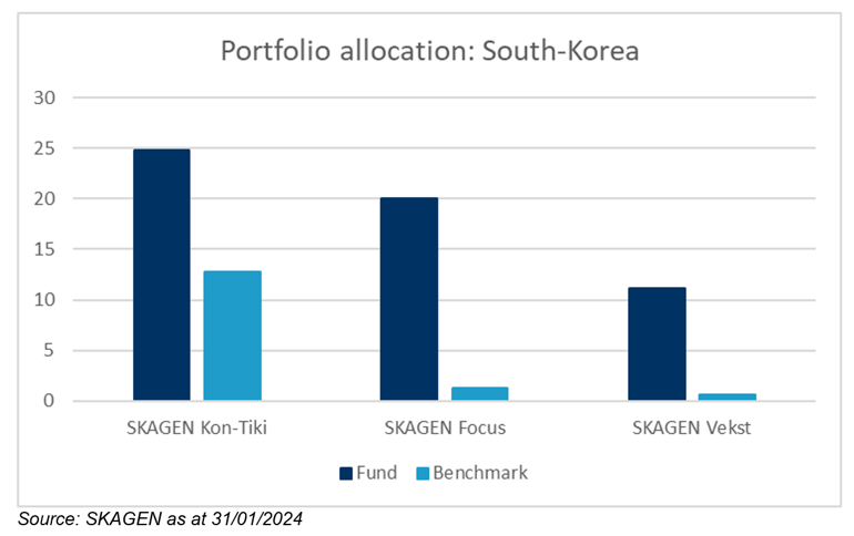 You can hear more about our work to help close the Korean discount at our SKAGEN Kon-Tiki webinar this Wednesday 14 February at 15:00 CET. Lead Portfolio Manager, Fredrik Bjelland will also share his thoughts on the outlook for emerging markets and where he sees opportunities for the fund in 2024. Register to watch the webinar here - if you are not able to watch live, we will send you the recording after the event.