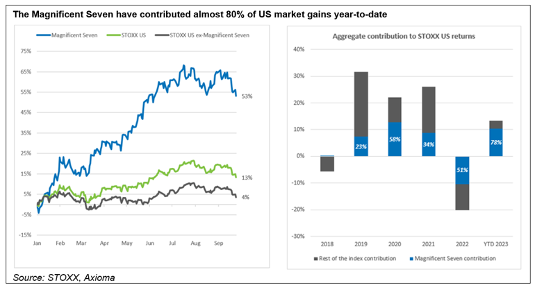 [5] Source: JP Morgan. 31.9% weighting of the top 10 stocks in the S&P 500 Index as at 30 September 2023.