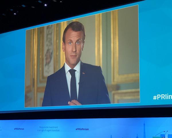 The French President Emmanuel Macron sent a video greeting to the participants of the global sustainability conference PRI in Person 2019.