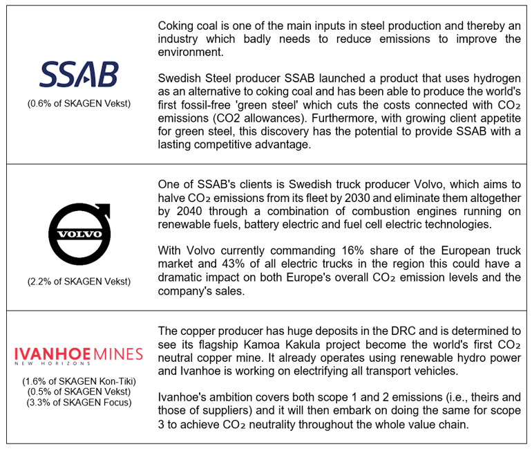 The good news for stock pickers like SKAGEN is that companies also face rising pressure from their own clients to set climate targets and scrutiny over how, when and whether they're being achieved. Regulators and industry bodies play an important role here too, particularly in standardising disclosure; the Task Force on Climate-Related Financial Disclosures (TCFD) and recently launched International Sustainability Standards Board (ISSB) being notable initiatives.